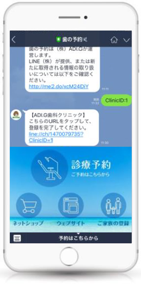 トーク内容に従い、【ClinicID:220】を送信するとURLが送られてくるので、開く。
